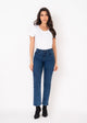 - High-waisted jeans design.